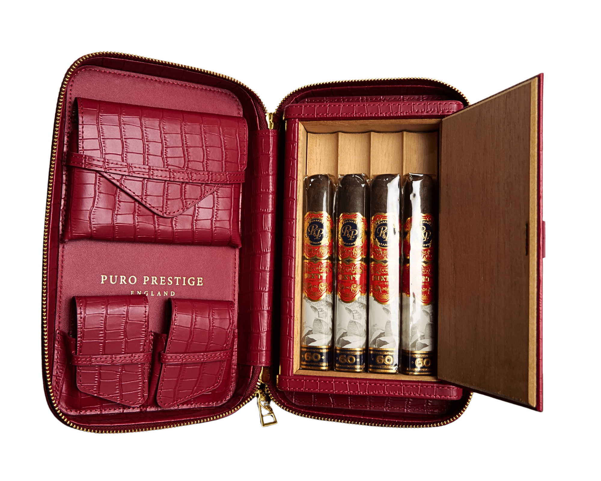 All of our travel cigar cases are built to last using only the finest materials. This version of our case is finished in ostrich skin-style blue leather – giving a more robust, rugged feel when compared to our original classic case. It is the ideal travel companion – sure to catch the eye of any fellow cigar aficionados.