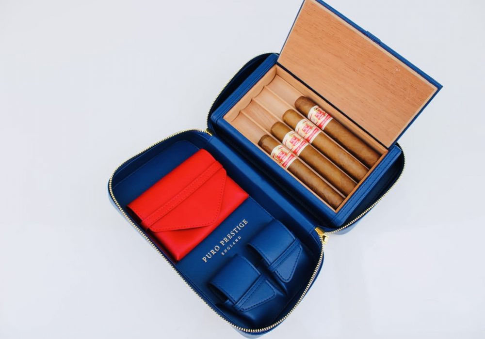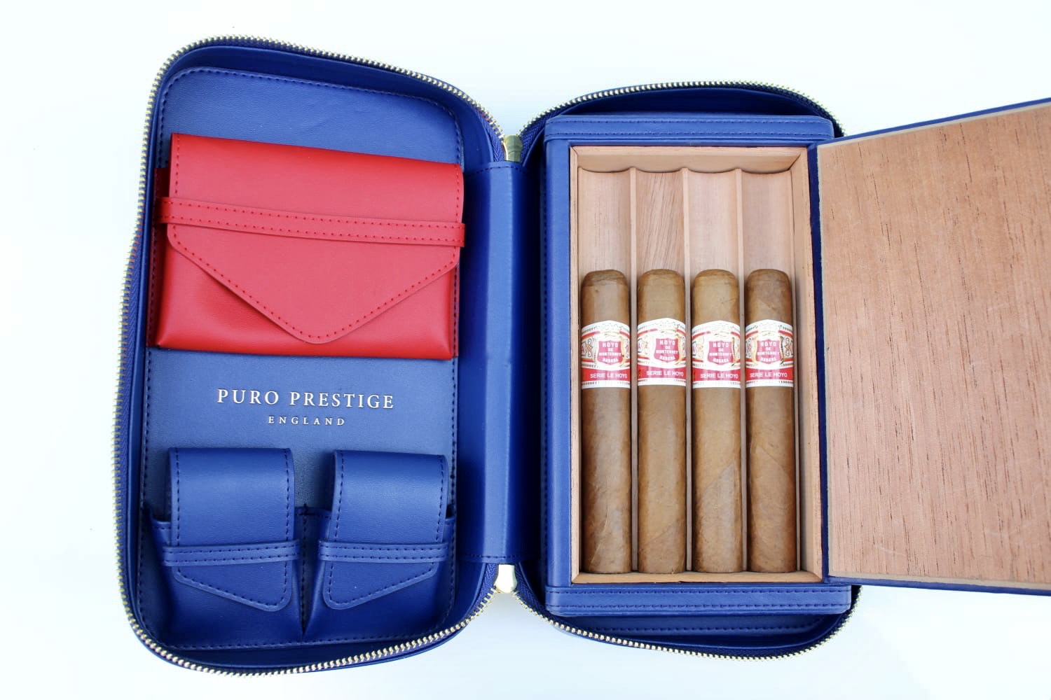 All of our travel cigar cases are built to last using only the finest materials. This version of our case is finished in ostrich skin-style blue leather – giving a more robust, rugged feel when compared to our original classic case. It is the ideal travel companion – sure to catch the eye of any fellow cigar aficionados.